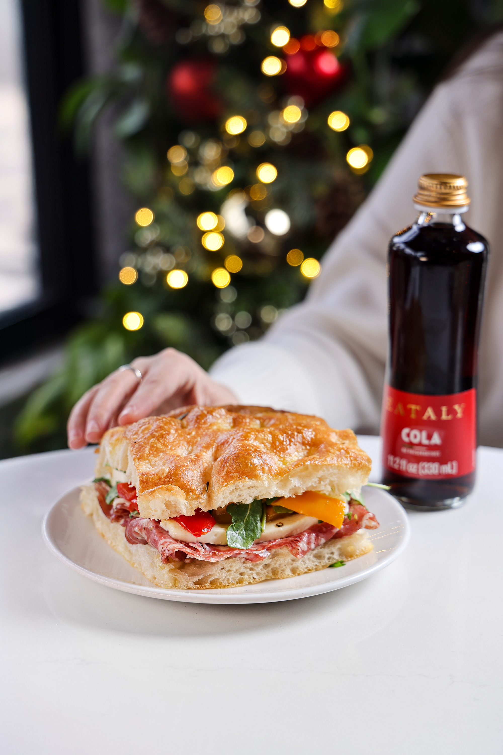 Take a bite of the season with Finocchiona IGP salame, fresh mozzarella, roasted peppers, and arugula layered on focaccia.