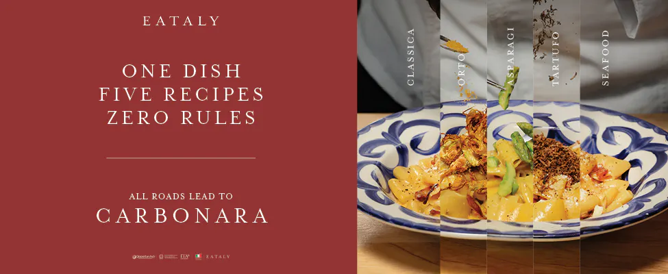 At Eataly, all roads lead to Carbonara...For a limited time, we’re putting the spotlight on this legendary Roman classic — with 5 new recipes to try. From traditional to unexpected, every plate is a new way to experience an icon.